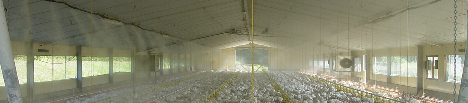 Le signe le plus évident de "stress thermique" chez la poule est le halètement. Les oiseaux n'ont pas de glandes sudoripares qui leur permettent de baisser leur température corporelle, donc ils utilisent l'évaporation par leur gorge et de leur système respiratoire comme moyens de se refroidir. Le halètement nécessite une grande quantité d'énergie qui à son tour, génère une quantité appréciable de chaleur corporelle pour les animaux en poulailler. En fin de compte, si les poulets ne sont pas libérés du stress thermique, leur température corporelle peut continuer à augmenter et à augmenter avec des possibilités de mortalité. Heureusement, plusieurs mesures peuvent être prises pour aider les oiseaux domestiques à gérer le stress thermique. La brumisation s’avère être une méthode efficace pour réduire le stress thermique pendant les vagues de chaleur en été dans les poulaillers à moindre coût. L'utilisation de brumisation sur les poulets améliore directement l’engraissement des animaux et diminue fortement la mortalité.