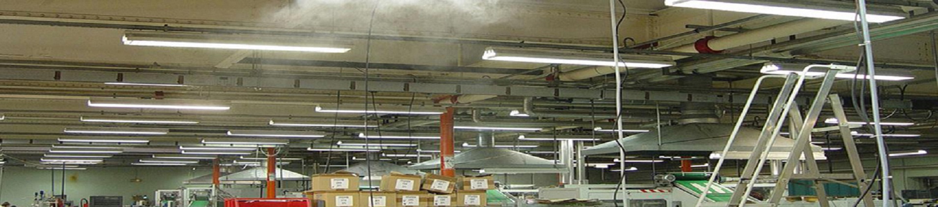 L'industrie textile peut également bénéficier de l'effet de refroidissement produit par nos systèmes de brumisation haute pression. Les gouttelettes d'eau brumeuses sont rapidement absorbées par l'air, l'évaporation fait baisser les températures étés, résultant en un système de refroidissement naturel. Ambiance de travail: le problème de l'air sec se produit principalement pendant les mois d'hiver, lorsque les systèmes de chauffage sont utilisés dans les zones de travail.