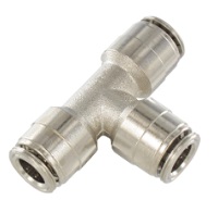 Raccord T (dérivation) slip lock en laiton nickelé, Ø 6,35MM - 1/4 - Ø 9,52MM - 3/8".